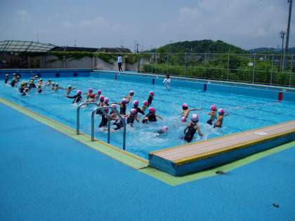今日は,朝から通り雨があり低学年の『水あそび』が実施できるか心配をしました。しかし,中間休みが終わる頃には,すっかりお天気は持ち直していました。
