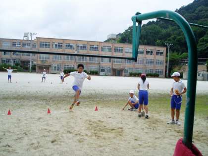 5年生は体育科の学習で,『走り幅跳び』に取り組んでいます。片足で踏み切り,両足で着地をする動作を十分に練習し,跳ぶ距離を伸ばしていました。