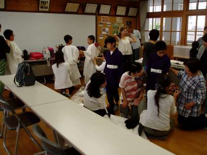 ふれあいサロンでは,たくさんの地域少年補導委員や保護者の方々にお手伝いをいただき,着付けをしていただきました。大変お世話になり有難うございます。当日も宜しくお願いいたします。