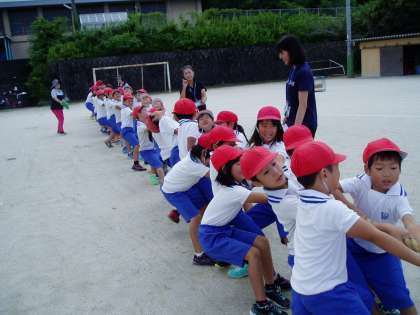 開会式の練習が終わり,次に縦割り種目の『つなひき』に出場する子どもたちの練習をしました。
