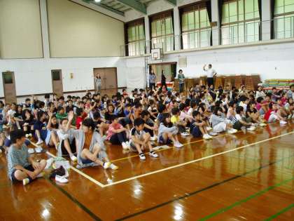 午前8時50分に全校の子どもたちが体育館に集まりました。3連休を挟んでの登校になりますが,元気よく校歌を歌い後期の始業を迎えることができました。