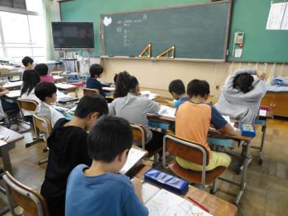 3年生の算数では,三角定規を使って学習しています。みんなは教科書と三角定規を見比べながら,熱心に学習を進めています。