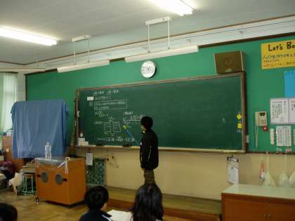 4年生の教室では算数科の学習に取り組んでいました。友だちが考えた線分図を見て考え,その友だちの意図を汲んで線分図の説明をするという授業風景でした。