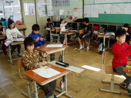5年生は図画工作科の学習で,針金を使った工作に挑戦していました。針金の性質や質感を利用して,高さのある造形物を創作するというものでした。