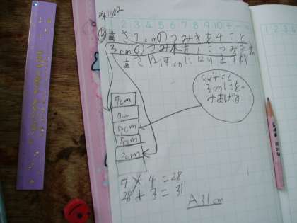 絵図をかくことで,数量の関係を整理し筋道立てて考え,式を立てることができました。