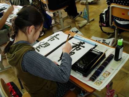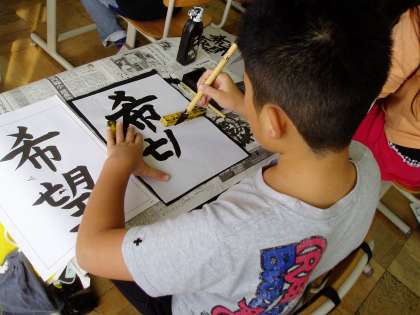5年生の教室では,『希望』という文字を毛筆で練習していました。落ち着いた雰囲気の中で,集中しながら丁寧に書き上げています。