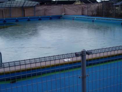 学校のプールには,一面の氷がはっていました。