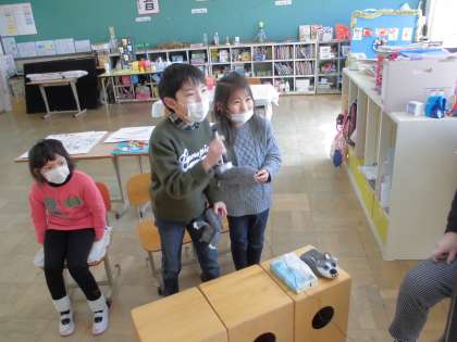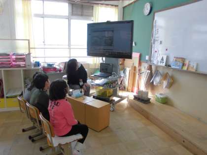今日は醍醐小学校のお友達と「テレビ会議」をしました。テレビに映る醍醐小学校のお友達の顔を見ながら,楽しく交流をしました。