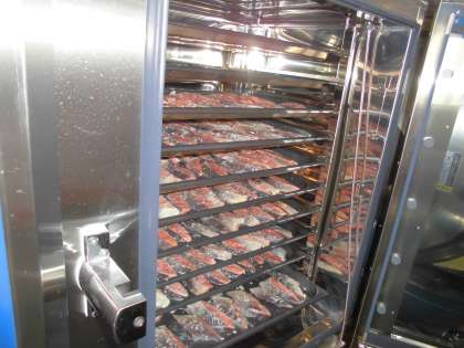 今日の献立は,むぎごはん・牛乳・さけの塩こうじ焼・ほうれん草のおかか煮・みそ汁でした。さけの塩こうじ焼はスチームコンベクションオーブンを使って調理しました。