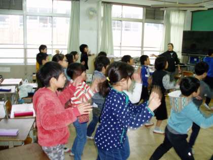 3年生の教室からは,軽快なリズムに合わせて踊る子どもたちの姿が見られました。