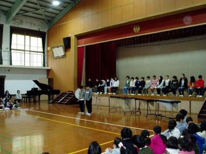 各学年の発表が終わると,6年生の代表がお礼のメッセージを届けました。そして,一人一人が,未来に向かって『決意表明』をしました。最後に,6年生全員で素敵な合奏をプレゼントしてくれました。