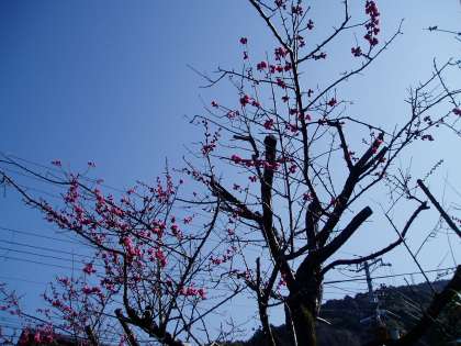 校庭の梅がきれい咲き誇り,清々しい梅の花の香りが感じられます。