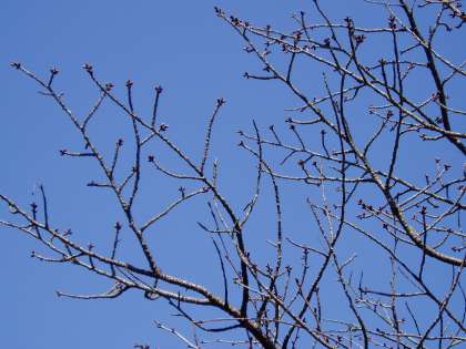 また,その隣には桜のつぼみが,新1年生の入学を心待ちにしているかのように佇んでいます。