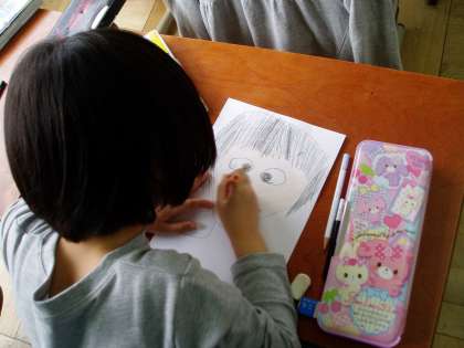 笑顔の似顔絵になるように目や口の描き方に工夫をこらしていました。