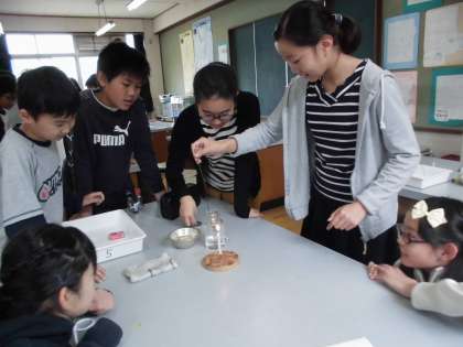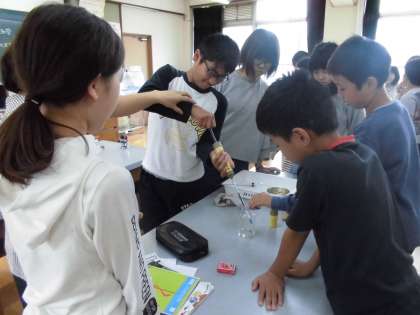 班の友だちと協力しながら,楽しそうに実験を進めていました。