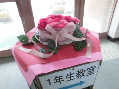 玄関口にもまるでケーキのようななカーネーションが飾られています。
