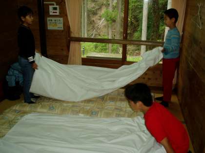 美味しくお弁当をいただいた後は,部屋ごとに別れてお布団の準備をしました。