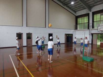 今週よりソフトバレーボールの学習をしています。安全に楽しく学習するためのルールを自分たちで考え,みんながボールを打てたり,パスをつなげたりできるように工夫していました。ポジションを入れ替えながら一人一人がボールを一生懸命つなげていました。