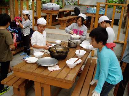 ご飯とすき焼き風煮の完成です。どのグループも美味しく出来上がりました。