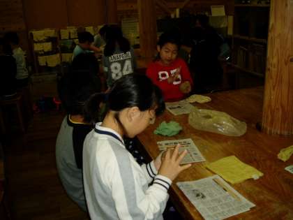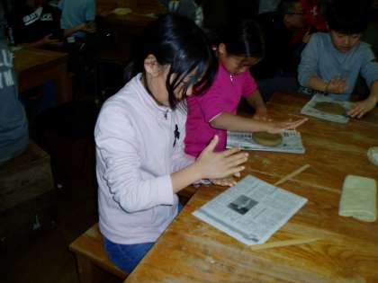 粘土の角をつぶしながら,丸めています。乾かないように手際良く制作に取り組んでいます。