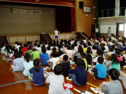代休明けの今朝は,全校が体育館に集まり朝会からスタートしました。