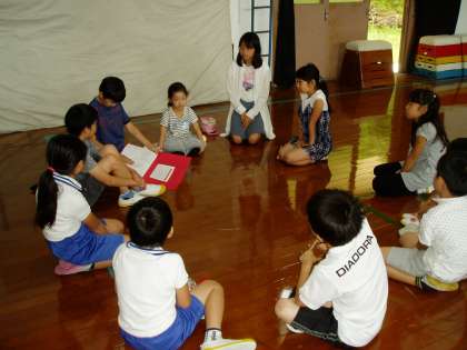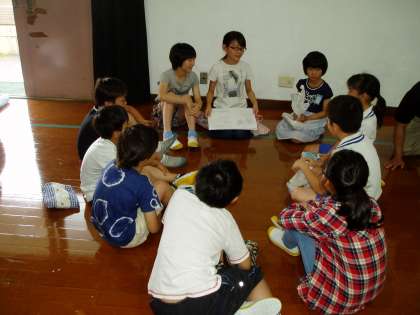 朝会の後に,今年度最初の縦割り活動で各グループの『顔合わせ』を行いました。グループごとに集まり,自己紹介をしました。各グループでは,6年生の子どもたちが下学年を優しくリードしながら話し合いを進めています。