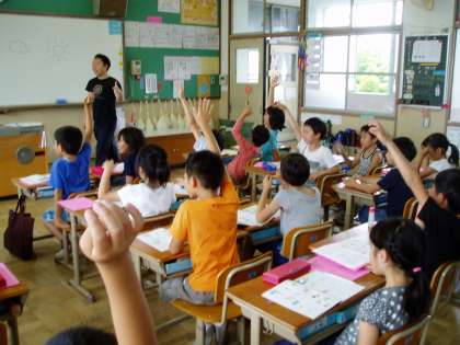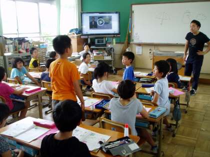 ALTのレオ先生が話す英語を聞いて,自分たちが知っている言葉をつなぎ合わせながら,その話の内容を考え合っていました。みんなで楽しく学習を進めています。