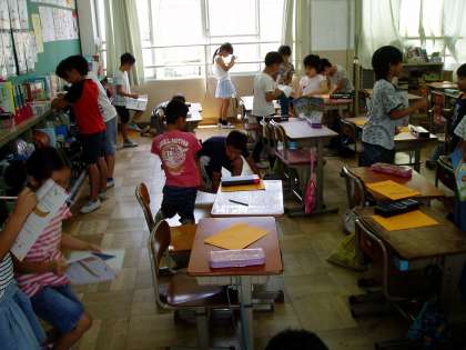 3年生の教室では外国語活動の学習で,数を数えたり英語でジャンケンをしたりしました。リズムに合わせながら体を動かし活動を楽しんでいます。