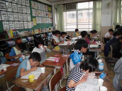 今週は,2年生から6年生までの各クラスで,プラークテスターによる歯垢染めの保健指導をしています。テスターのピンク色に染まった自分の歯を見てびっくりする人や,前歯はきれいに磨けていても,奥の歯の隙間やかみ合わせの部分に磨き残しがあったことがわかり,残念がる人もいました。正しいブラッシングの仕方を教えてもらい,鏡を見ながらていねいに歯磨きをしていました。