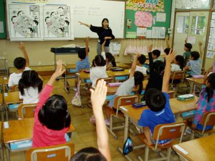 1年生の子どもたちは,給食を食べる時の約束(食事のマナー)について学習しました。栄養教諭が示した2枚のイラストを比べながら,食事中に気をつけたい事を話し合いました。
