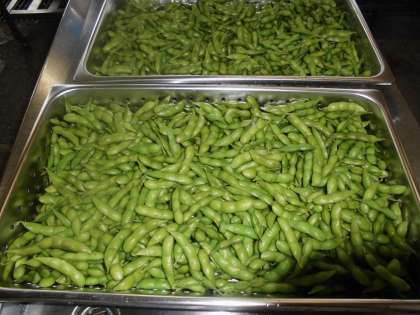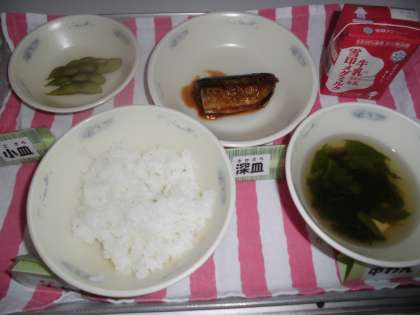 今日の給食の献立は,「ごはん」「さんまのかわり煮」「えだ豆」「すまし汁」でした。スチームコンベクションオーブンで蒸して仕上げたえだ豆は,ふっくらとやわらかく,えだ豆の甘味を感じられる献立です。子どもたちからは「甘くておいしい!」「塩はかかってないの?」という感想が聞けました。えだ豆そのものの素材の味をおいしくいただきました。