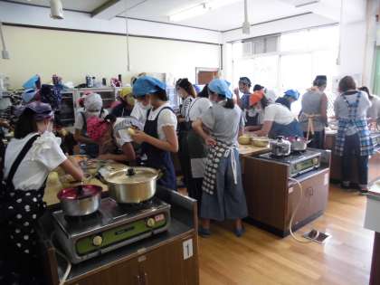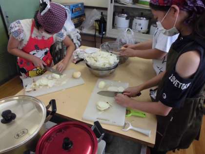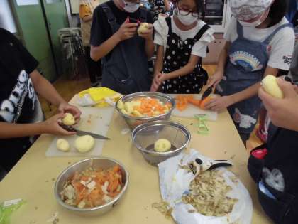 玉ねぎが目に染みて,泣きながら野菜を切っている児童もいました。