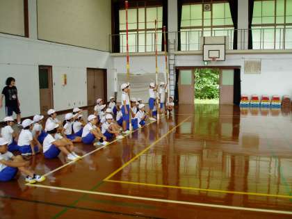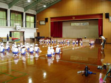 3・4年生の子どもたちは,体育館で運動会の練習中です。