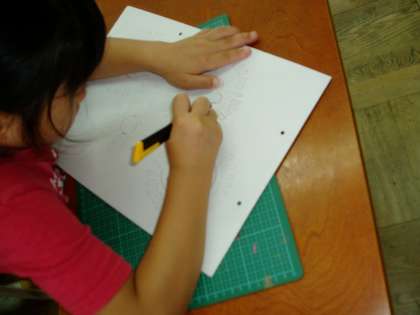 今日はカッターナイフを使って,厚手の紙を切り抜くことに挑戦です。注意をしっかりと聞き,約束を守って取り組んでいました。