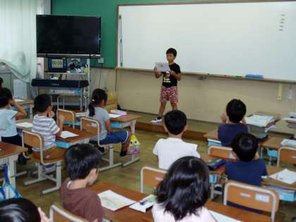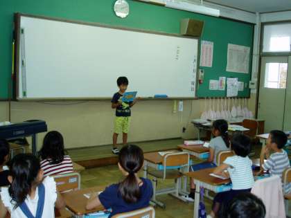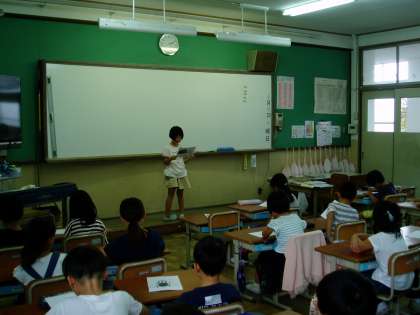 今日は,それぞれが『大好きなもの』(伝えたいこと)について,必要な材料を集め,話す順序を考えて書いた作文を丁寧な言葉づかいで話すことを目当てに発表会をしています。少し緊張気味ですが,上手に発表できていました。