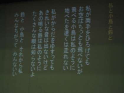 のお褒めの言葉があり、その後、金子みすずさんの詩の紹介がありました