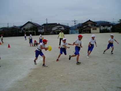 先週もお知らせしましたが,4年生の体育科では,タグラグビーをもとに考えられた新しいボールゲームが始まっています。