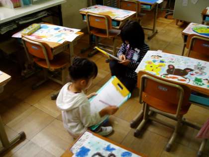 1年生は図画工作科で取り組んだ『お話の絵』が完成しました。