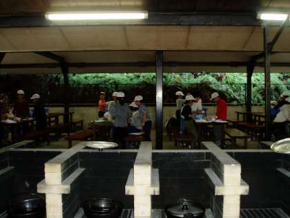 午後3時から野外炊事に取り掛かりました。今日の夕食は,「すき焼き風煮」です。どのグループも美味しい夕ご飯を目指して協力しています。