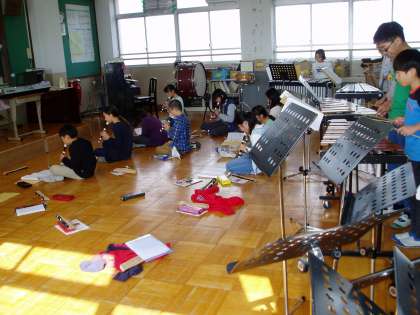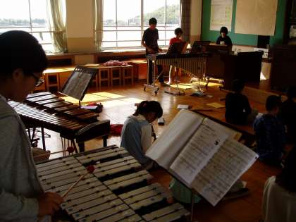 6年生の1組は,音楽室で合奏の練習に取り組んでいます。テンポの良い曲を演奏するので,全員が息を合わせて演奏できるように練習を繰り返してきました。