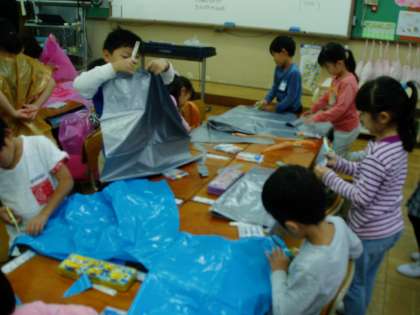 1年生は学習発表会に向けて,動物の衣装作りをしていました。