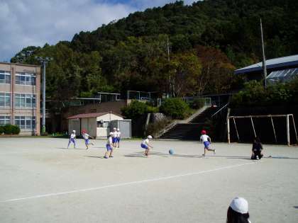 3年生は体育の学習でハンドベースボールを楽しんでいます。