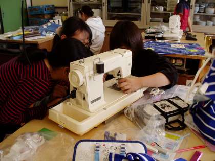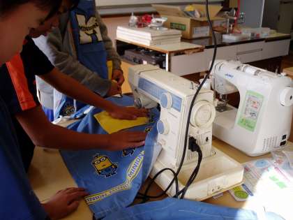 今日は,ミシンを使ってエプロンを仕上げていました。