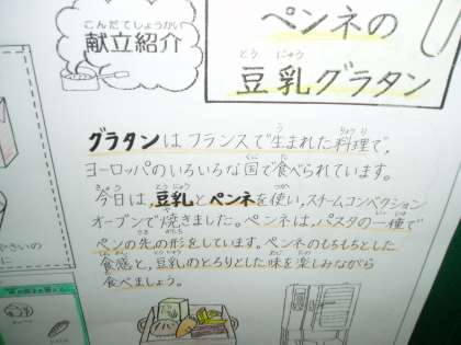 『ペンネの豆乳グラタン』は,新メニューです。パン粉を振りかけ,スチームコンベクション・オーブンで焼き上げられているので,外はカリッと香ばしくて人気のメニューになりそうです。
