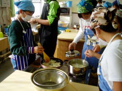6年生の子どもたちは,家庭科室で調理実習をしています。