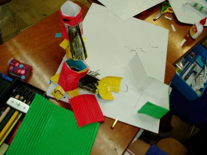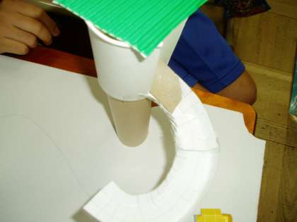 4年生の子どもたちは,図画工作科でビー玉が転がり落ちる仕組みを利用した楽しいコースづくりに夢中です。