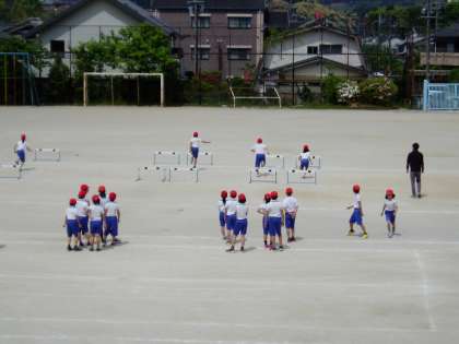 運動が大好きな4年生の子どもたちは,ハードル間を決められた歩数で走るという『めあて』をもって楽しく活動しています。