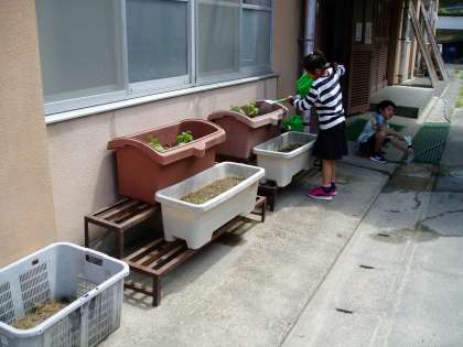 あすなろ学級の子どもたちは,大きなプランターで『ゴーヤ』を育てています。