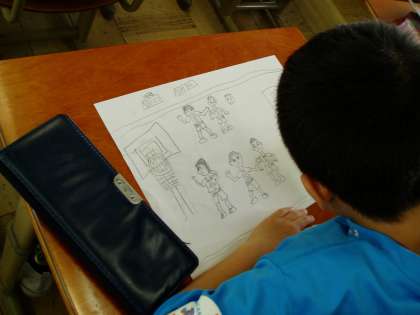 今日は,『15年後の自分は何をしているかな?』ということをテーマに,想像しながら絵を描いています。子どもたち一人一人の個性溢れる作品が仕上がりそうです。