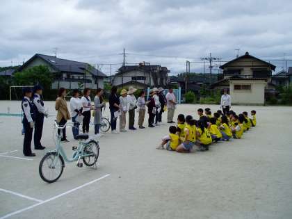 今日の3時間目に,4年生の子どもたちは『自転車安全教室』に参加しました。山科警察署や地域,本校PTAの方々にご支援をいただき自転車の安全な乗り方を学ぶことができました。